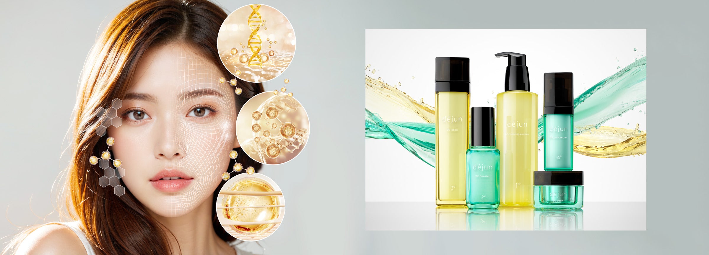 微細化された成分は肌構造に近い『ラメラ構造のナノカプセル』で包み込まれ必要な成分を、必要な層へ最適なかたちで届ける処方を実現しました。“ただ与える”のではなく、必要なところに“響かせる”という発想から生まれた先進スキンケアである美しさの可能性をdéjunは技術で応え続けます。